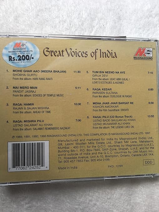 Great Voices Of India - The music of india includes indian classical music, multiple varieties of folk, popular, pop, and, most recently, rock music.